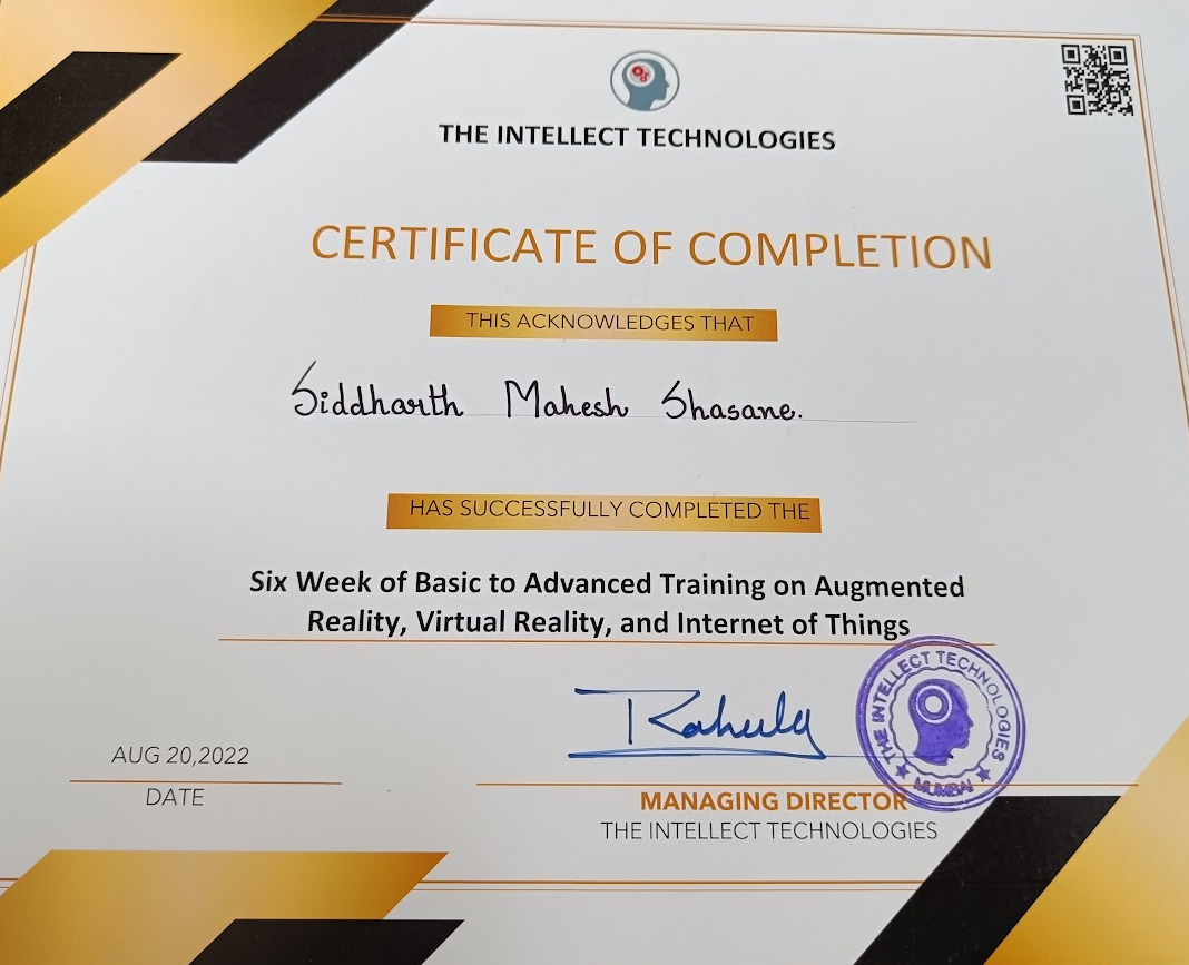 Six Week of Basic to Advanced Training on Augmented Reality, Virtual Reality and Internet of Things.